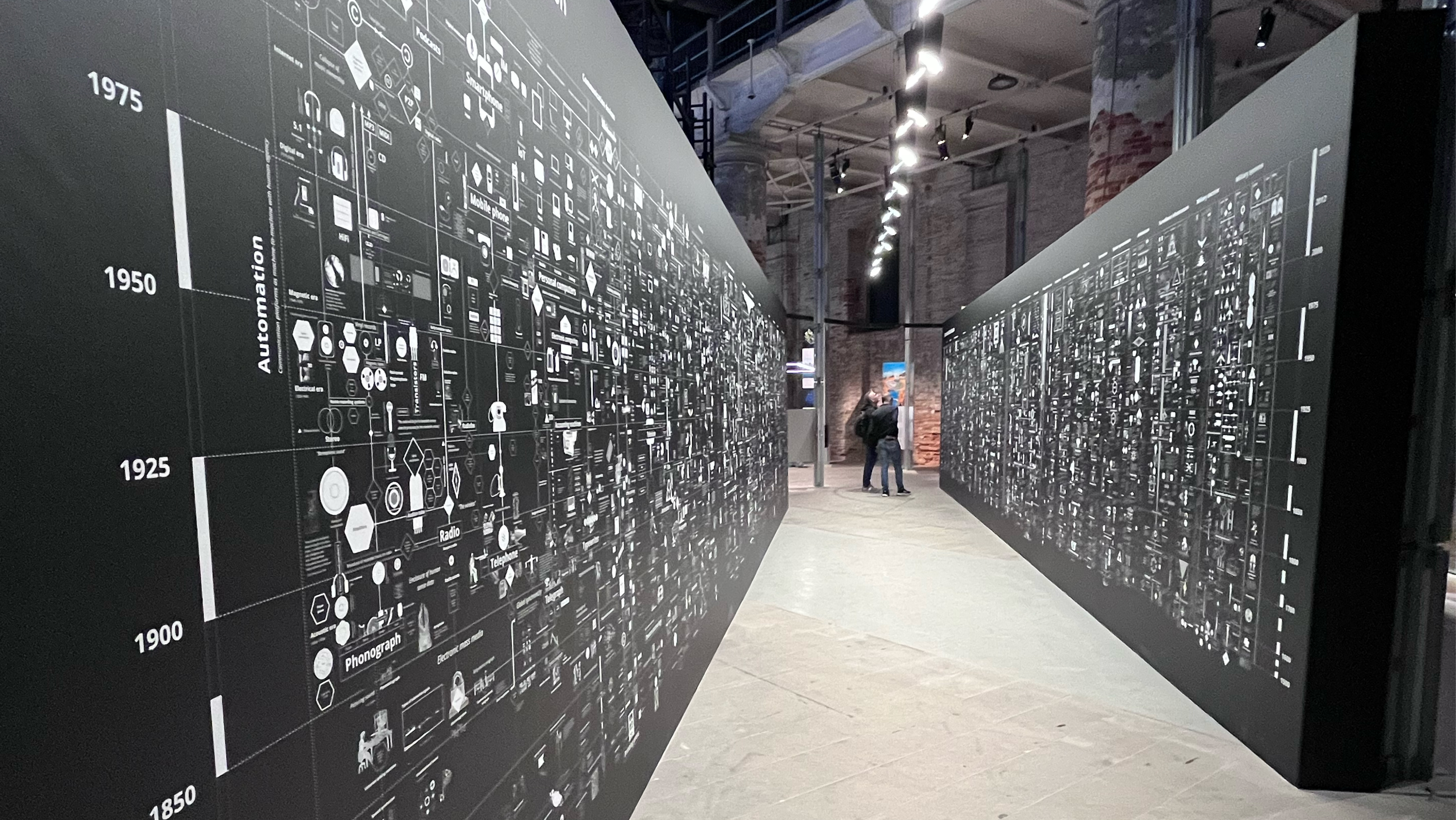 The walk-in theatre set up for A Satellite Symphony allows participants to immerse themselves in both the data and the physical debris from the weather events it depicts. Visitors can walk around a fully unfurled Space Garden and view cutaways to see inside its greenhouse pods. Navigating exhibits at the International Architecture Exhibition is facilitated by ‘AI Summaries’ of each artefact. These succinct, TLDR overviews allow visitors to capture the essence of each exhibit at a glance before committing to reading the full summary.
